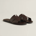 Take off. Let your mind and your feet wander. Inspired by the warm scents of distant shores, the Izmir sandal promises escape, wherever you are. Designed in 2004, it's renowned for its timeless elegance, which has been a source of inspiration throughout time. Its H cut and sleek lines inspire a summer of possibilities.